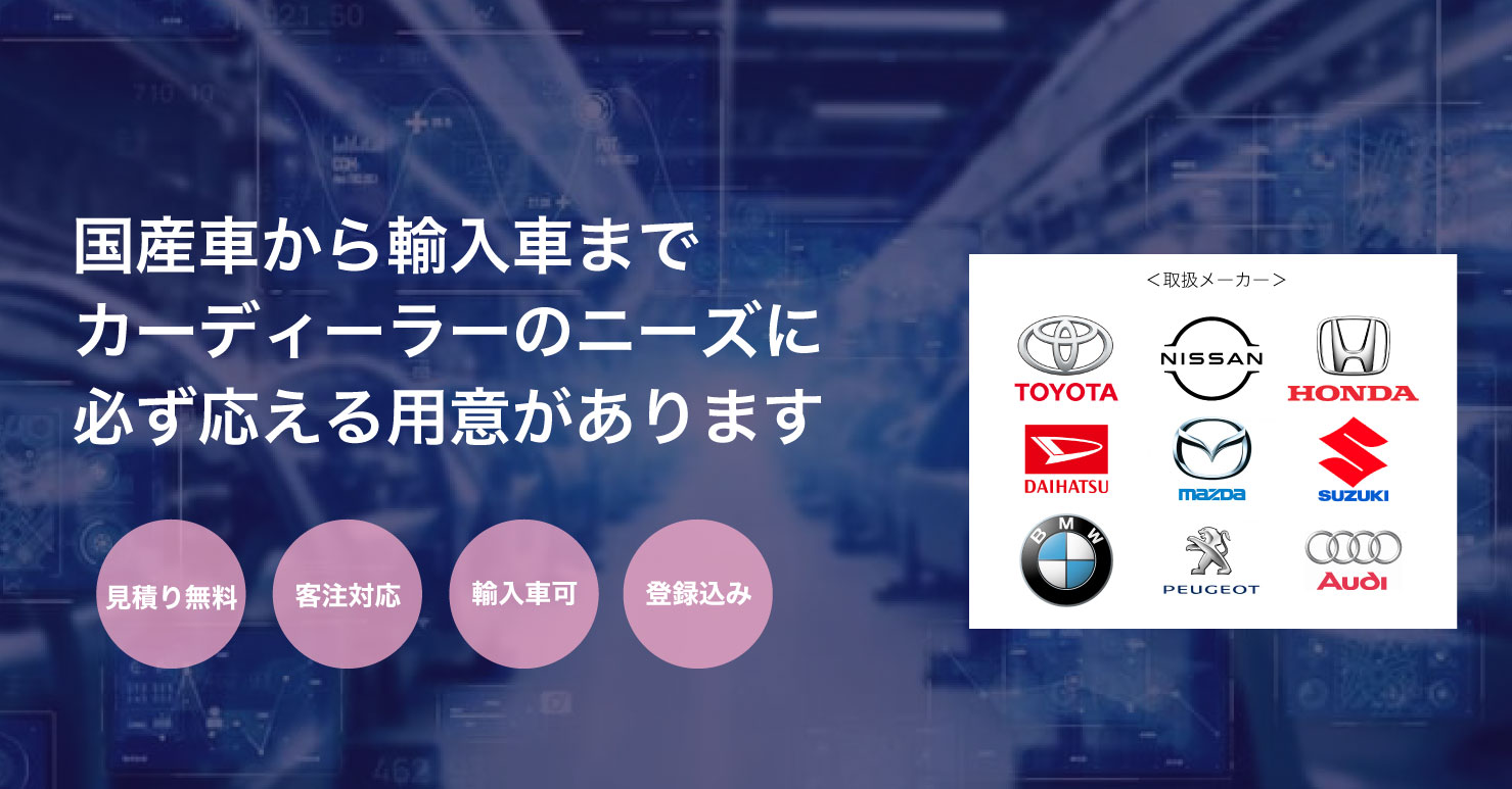 弊社が2012年より営業しておりますQuickxQuick(共有在庫)のサービスを利用されている加盟店様は弊社担当だけで約800店舗。その信用力から多くのディーラー様より特別な仕切り販売価格を設定していただいております。これを機会に仕入れ先を見直されてはいかがでしょうか。